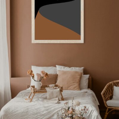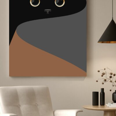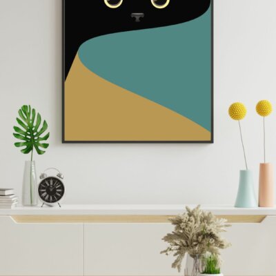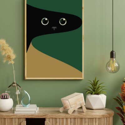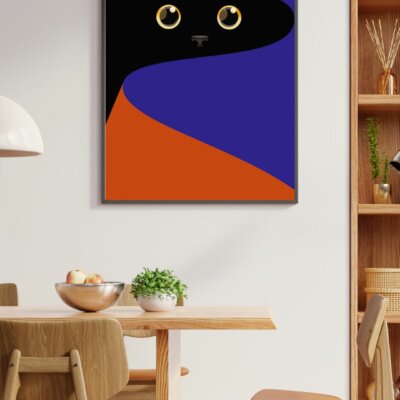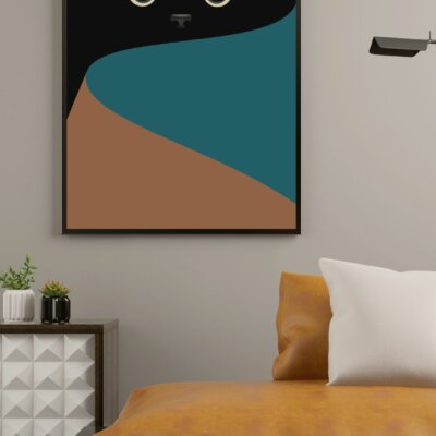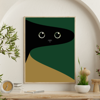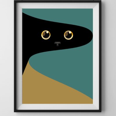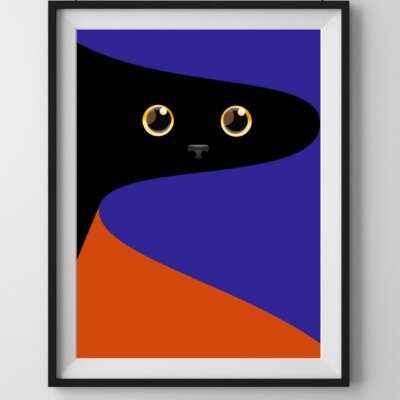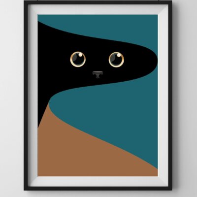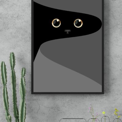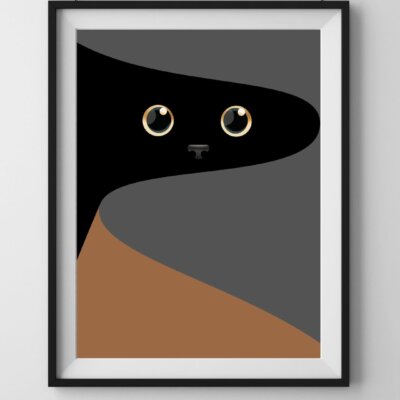 Minimalistyczny plakat z abstrakcyjnym wizerunkiem kota pod kocem. Doskonały jako dekoracyjne dopełnienie każdego wnętrza zarówno dla miłośników kotów jak i do pokoju dziecięcego.