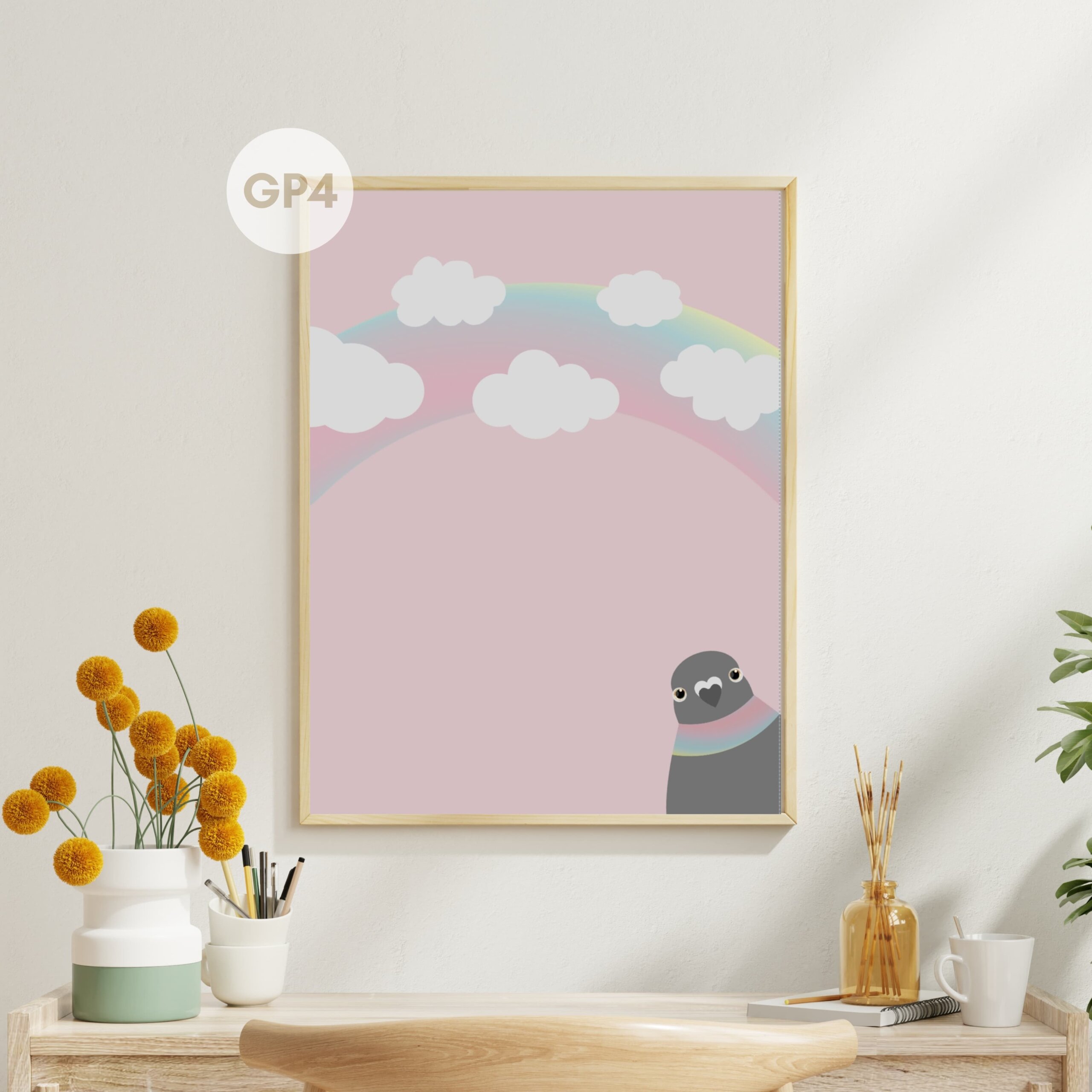 Minimalistyczny plakat z gołębiem, który pasuje do każdego wnętrza