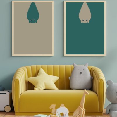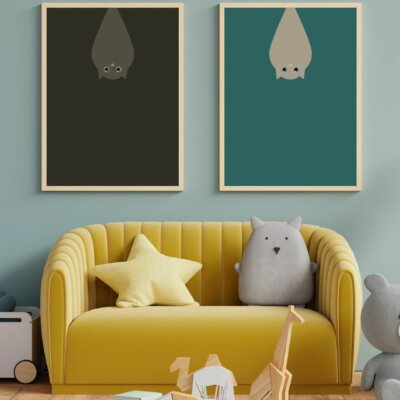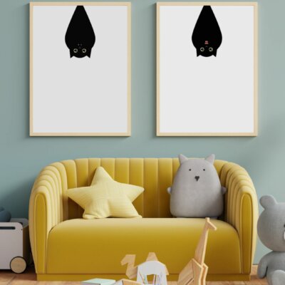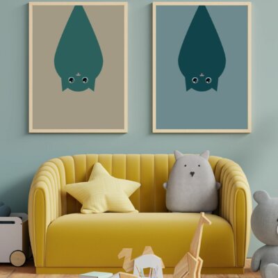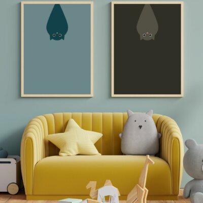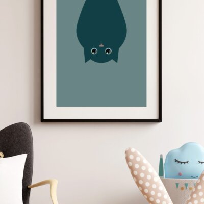 Minimalistyczny plakat z abstrakcyjnym wizerunkiem nietoperza. Doskonały jako dekoracyjne dopełnienie każdego wnętrza zarówno dla miłośników prostoty jak i do pokoju dziecięcego.