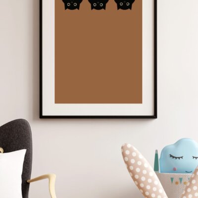 Minimalistyczny plakat z abstrakcyjnym wizerunkiem nietoperzy. Doskonały jako dekoracyjne dopełnienie każdego wnętrza zarówno dla miłośników prostoty jak i do pokoju dziecięcego.