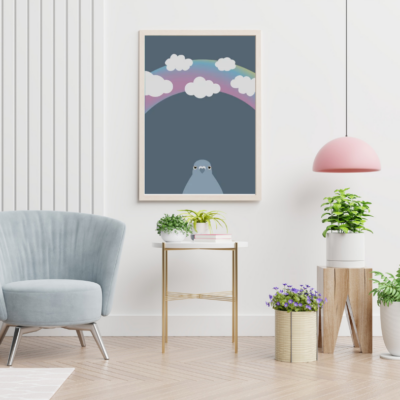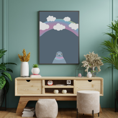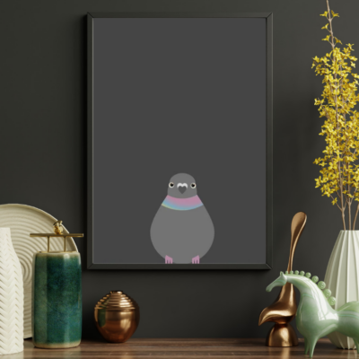 Minimalistyczny i zabawny plakat z wizerunkiem gołębia, doskonale sprawdzi się jako oryginalna dekoracja na ścianę w każdym wnętrzu!